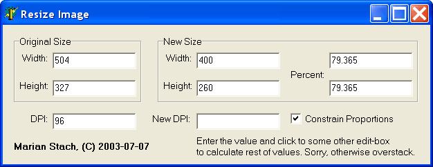 Táto utilitka prepočítava chýbajúci rozmer na základe originálnych rozmerov